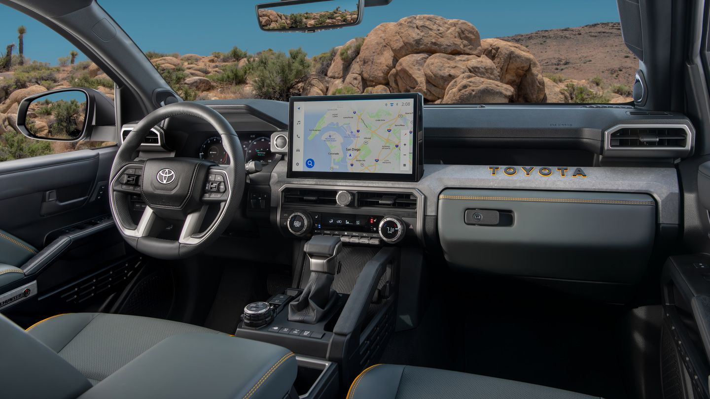 The Toyota Multimedia system features wireless smartphone charging and connectivity through Service Connect, Safety Connect, Remote Connect, and Drive Connect. The 12.3-inch digital gauge cluster is standard on TRD Sport and Limited trims.